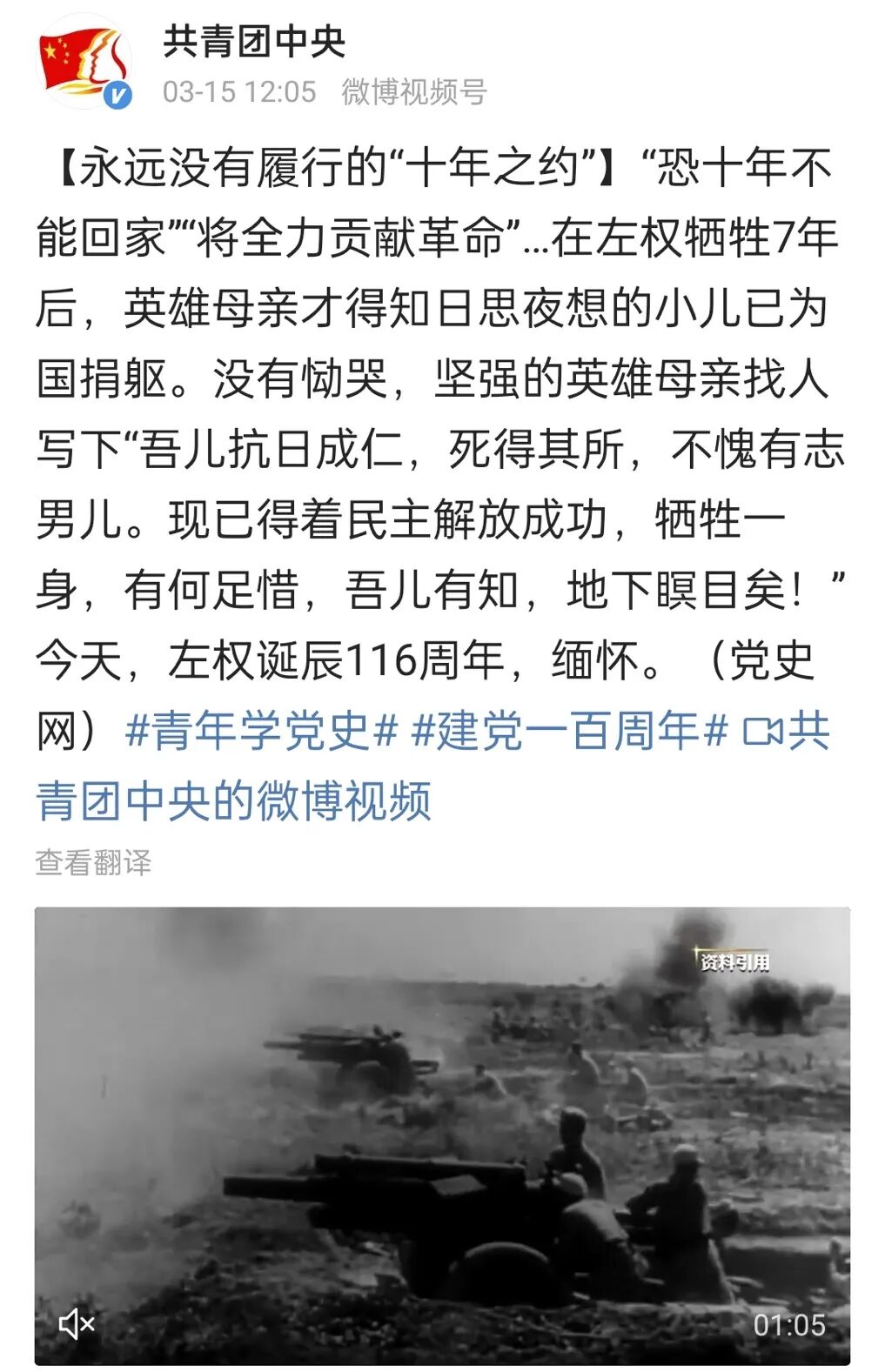 左权曾写信给母亲: