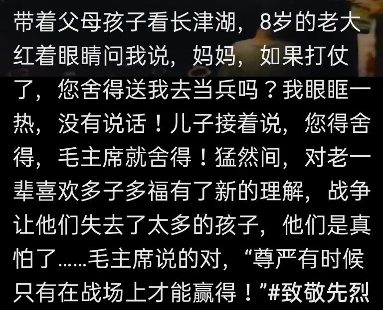 一位网友带父母和孩子去看《长津湖》