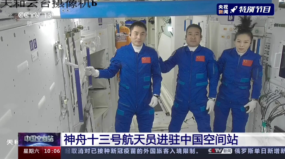 10月16日上午,神舟十三号3名航天员顺利进驻天和核心舱!
