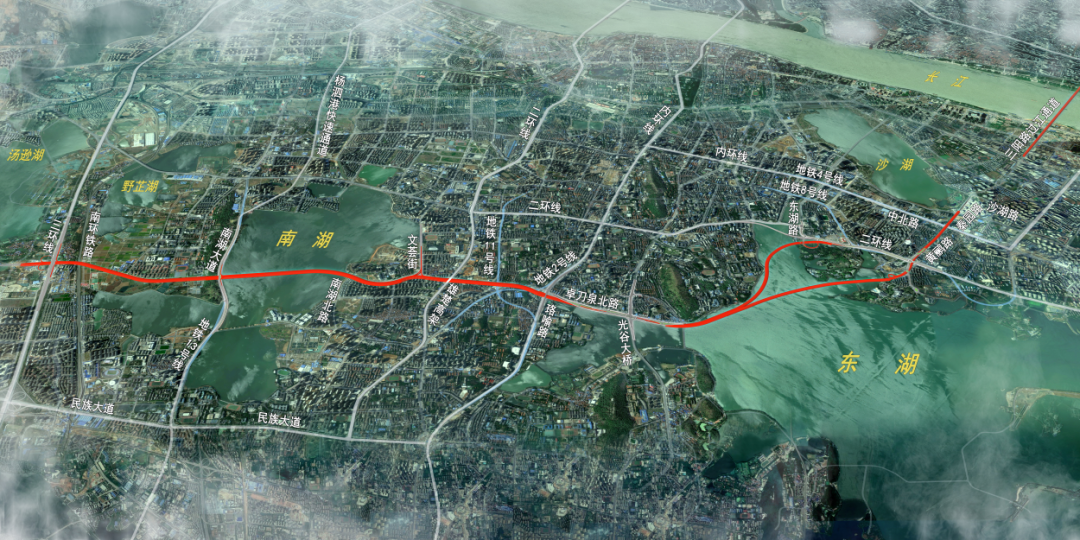 武汉城投集团总工办负责人介绍,两湖隧道位于武昌中心城区南北向中轴线位置。