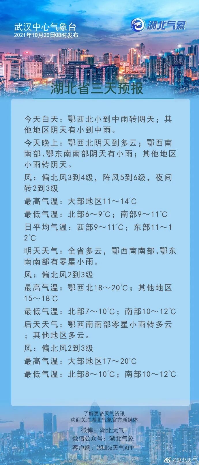 湖北省未来三天天气预报