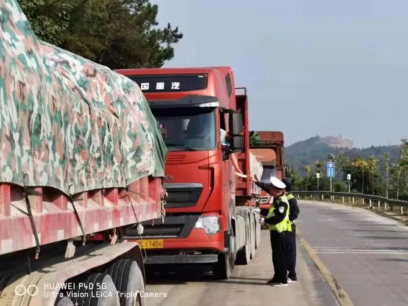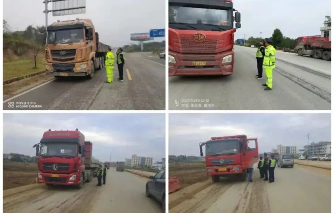 黄州区交通综合执法大队治超专班按照上级部门的决策部署,加强路警联合治超执法深度融合模式,坚决打击违法超限运输的嚣张气焰,确保道路交通安全畅通。针对重点车辆上路行驶规律和违法特点,实行24小时错时巡查机制,加强重点时段重点路段的管控力度,形成高压严管态势,本周共查获17台超限超载车辆,“百吨王”5台。