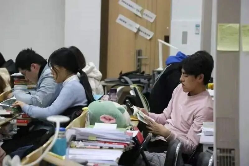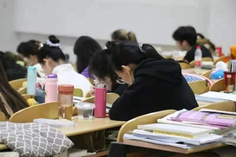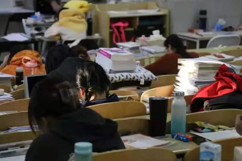 考研自习室里书本层层累叠杯子衣物随意搁在一旁满教室的同路人这条路真的不孤单