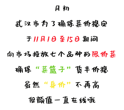 为了平抑菜价必须加大供给,湖北省农业厅蔬菜办主任周雄祥介绍,目前,全省各地农业农村部门都进行紧急部署,省内各地都采取了相应措施,支持蔬菜生产,抢播快生菜,加强生产技术指导,以快速供应市场。当前,全省蔬菜供应充足,在天气好转后,对武汉、咸宁等重点产区的秋冬蔬菜抓紧采收、上市,加大供给。