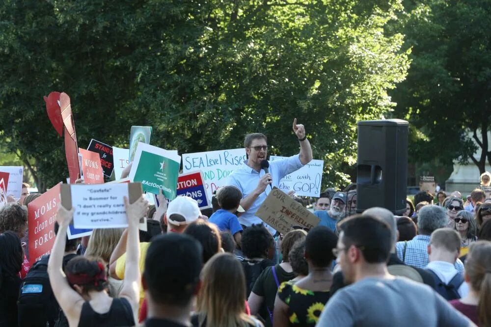2017年6月1日,民众在白宫外抗议美国退出《巴黎协定》。图源:新华社 二