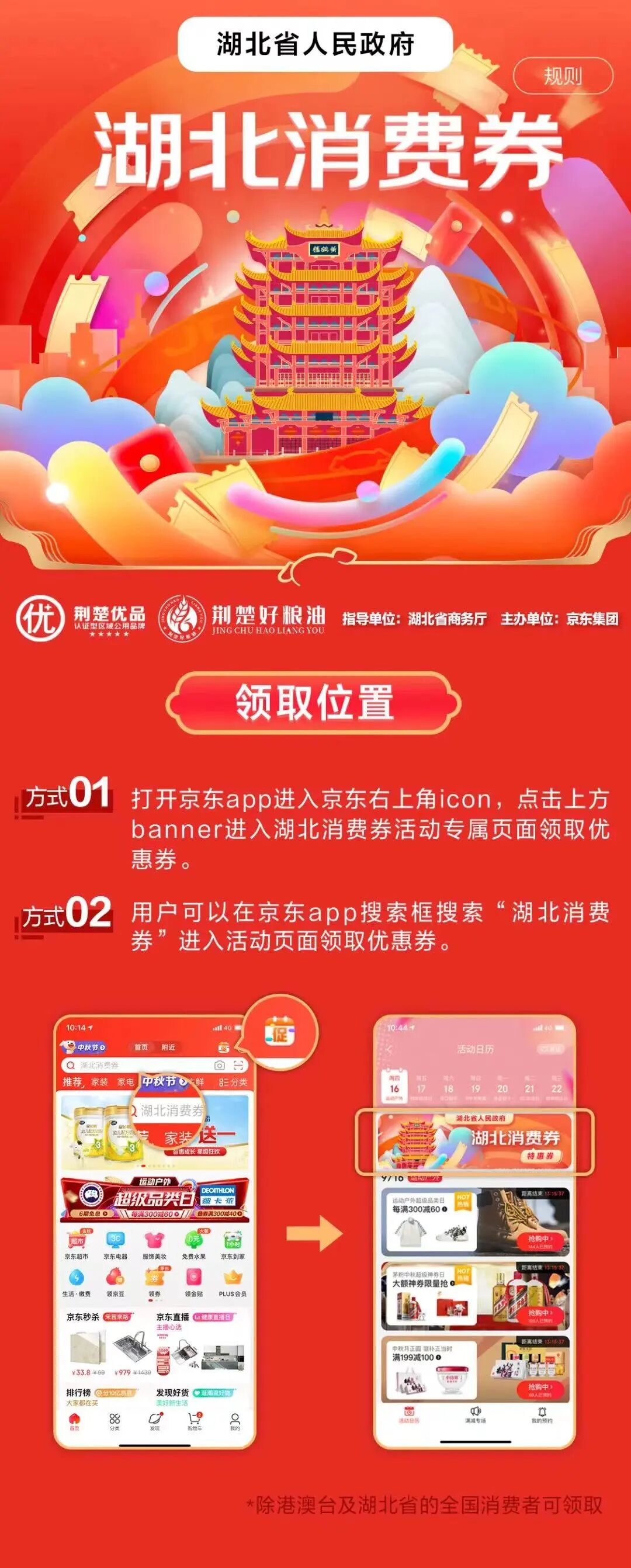 特惠券是面向省外消费者发放的“荆楚优品”“荆楚好粮油”特别消费券,以助力湖北特色产品更好走向全国。
