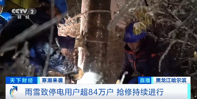 供电线路受冻雨天气的影响出现相应损坏,初步统计截至9日9时,黑龙江省已有超过84万户居民出现停电现象,抢修工作也在持续进行中。截至目前,大概有超过32万户恢复供电。但随着降雪不断持续,这样的影响有可能进一步扩大。
