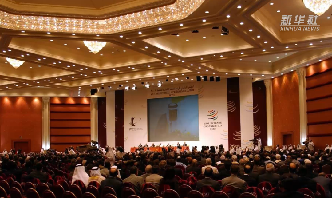 卡塔尔首都多哈喜来登酒店灯火通明世贸组织第四届部长级会议在这里举行中国人第一次在世贸组织会议中坐在了第一排有关中国加入世贸组织议题的审议是当天的焦点