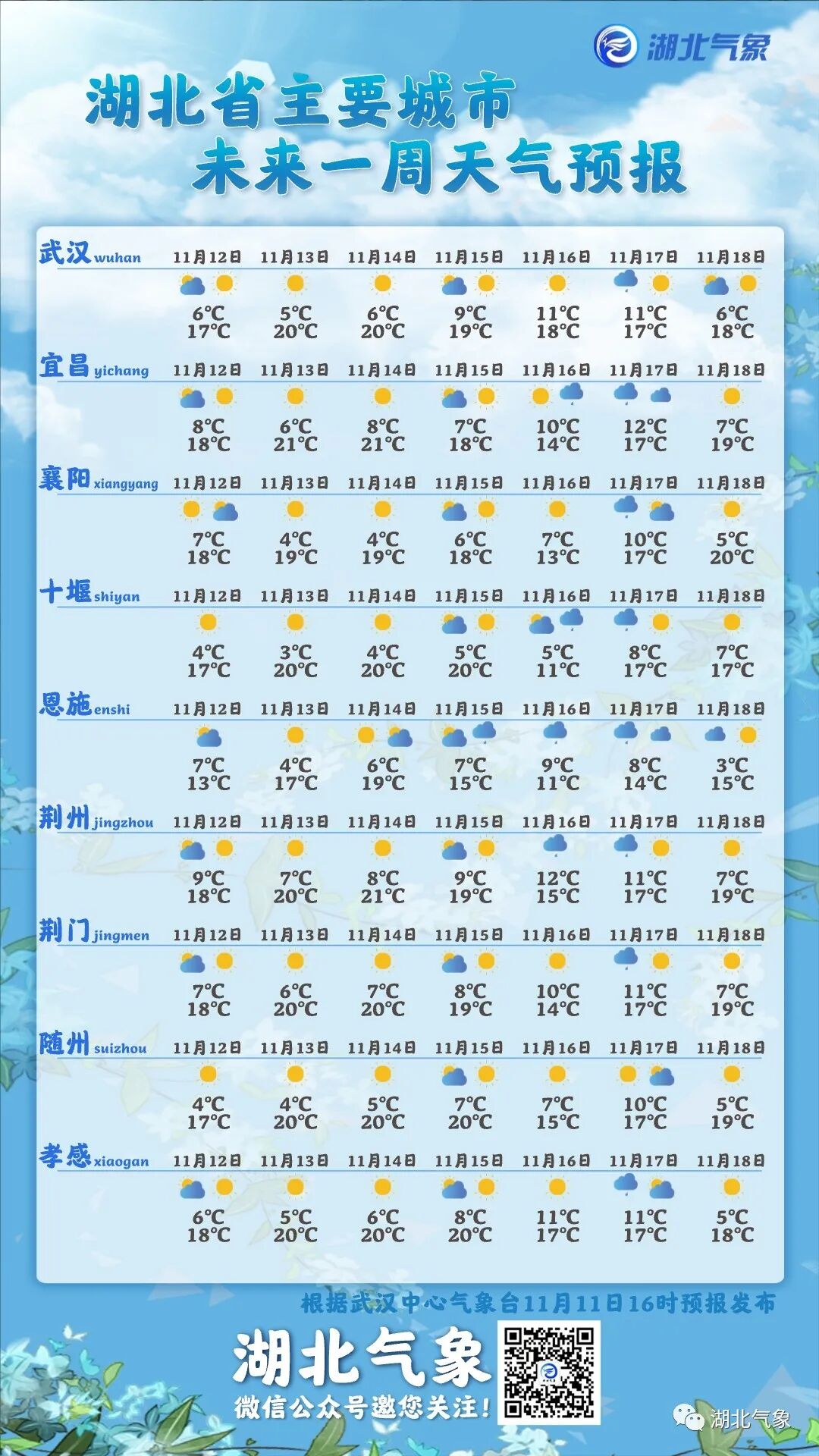 昨天(11日)我省大部地区晴天到多云最高气温大部地区17~21℃全省最高为黄梅20.9℃西部地区受降水影响气温仅9~15℃