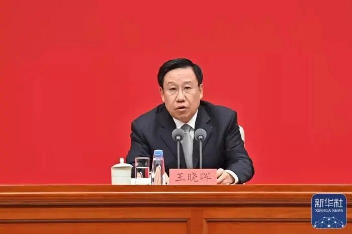 中央宣传部分管日常工作的副部长王晓晖在发布会上介绍有关情况。图片来源:新华社