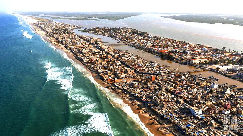 △2021年11月,塞内加尔圣路易斯,位于塞内加尔河顶部和大西洋海滩之间的房屋受到海浪侵蚀。专家表示主要原因是全球变暖导致海平面上升。(图/视觉中国)