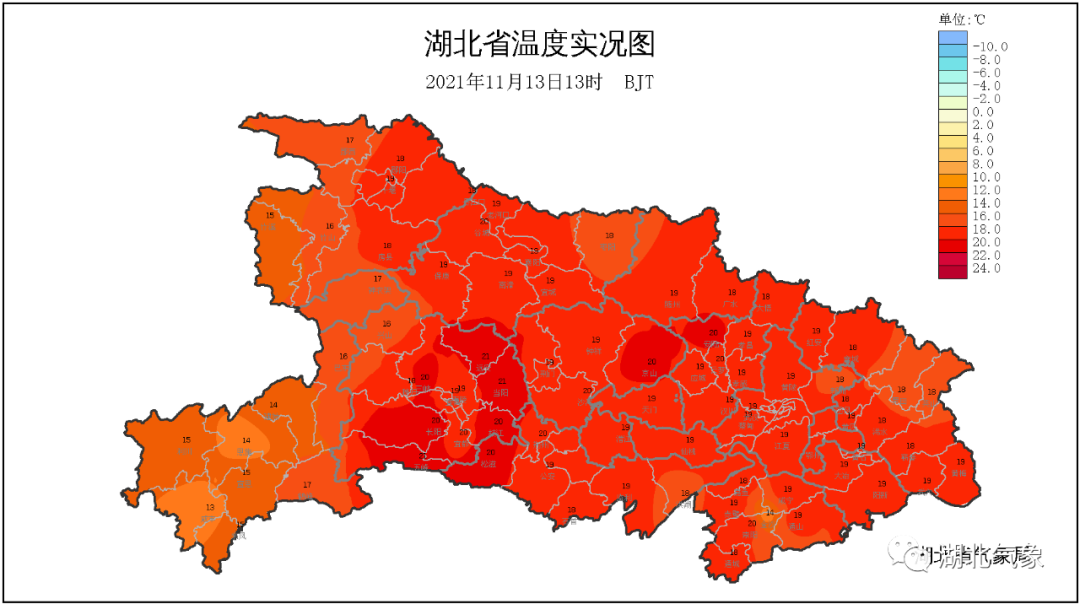 今天晴朗天气延续早上气温仍然较低鄂西北山区最低气温在0℃以下恩施、随州、荆州等地出现大雾晴朗的秋季空气格外干燥今天中午1点我省大部地区气温已升至18~21℃