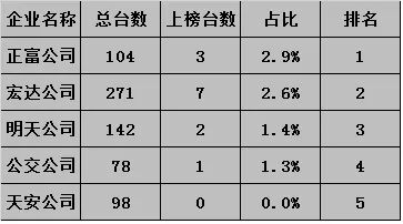 “企业榜”是出租车公司服务质量的排行榜。