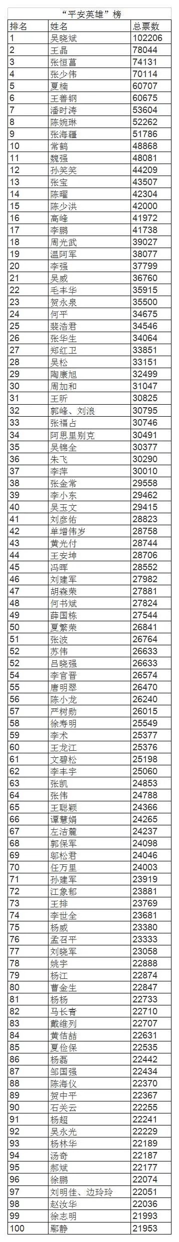 新鲜出炉的排名立刻奉上——“平安英雄”前100名榜单(数据截至12日20时)