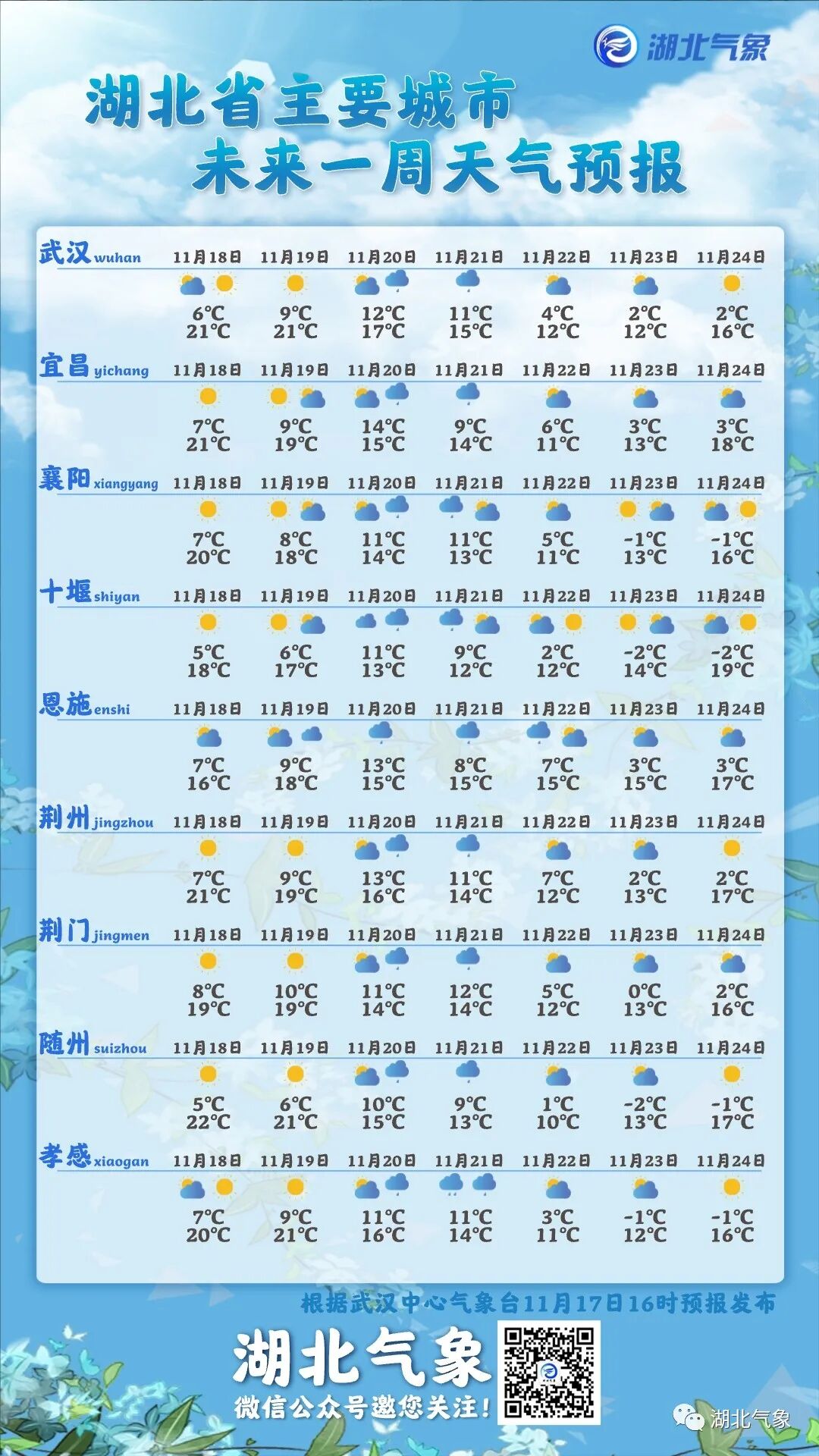 湖北省主要城市一周天气预报