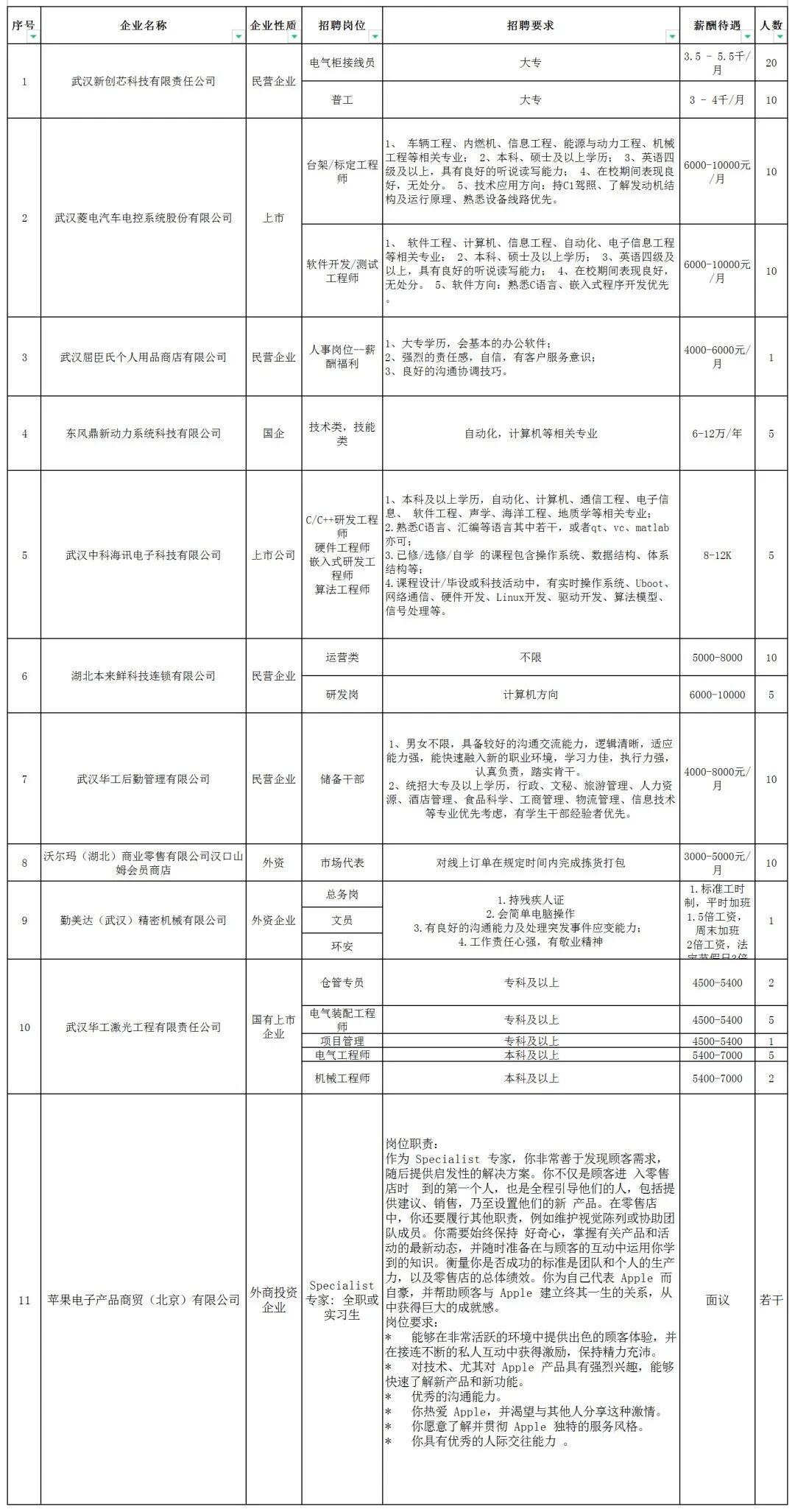 招聘岗位(部分)