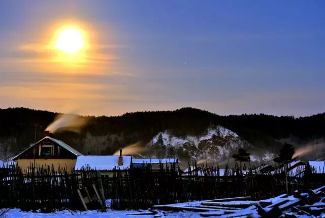 这里零下40度的气温让来到这里的人充满了挑战,但是清冷的阳光照耀着一幢幢小木屋,又有着一种说不出的温情,使人想一直留在这个古朴的小村庄,不忍离去。