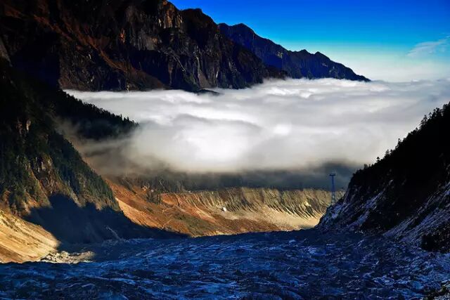 千年冰川、雪山冰瀑都是海螺沟的奇景,这里使人深感一种隔绝尘世喧嚣的宁静美,大雪洗尽纤尘,使得这里的空气清新凉爽,沁人心脾。