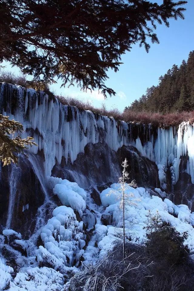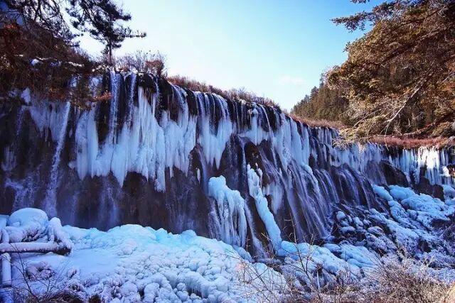 冬天的九寨沟是一个纯白色的童话世界,九寨沟的冬天除了长海外,其它海子都不结冰,但激流的瀑布此时却都冻成了冰条,仿佛时间在某一刻在这里已经静止,让人感到仿若走进了一幅绝美的画中。