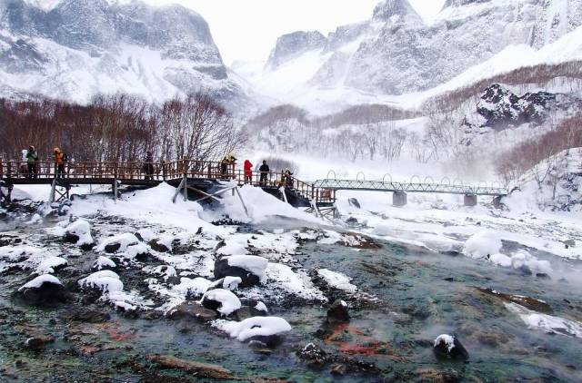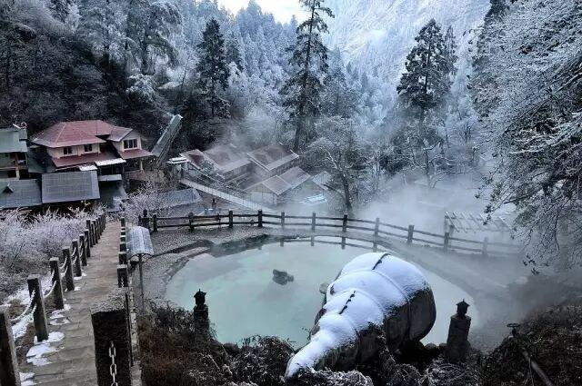 来到海螺沟,不得不提到的一定是它的温泉,沐浴在海螺沟温泉里,身体宛如天上漂浮的暖云,能深切感受到来自海螺沟冰川地底的热力,冬日里雪花飘飞,整个人被温暖的泉水所包裹,怡然自得,舒适不已。