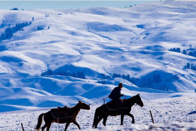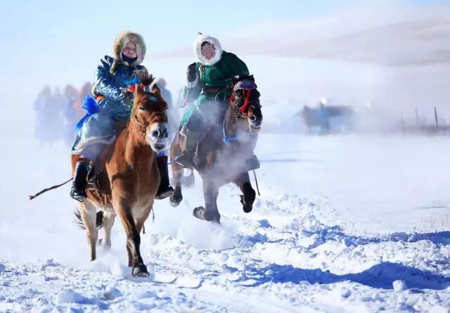 冬日里虽然寒冷,但人们并不因此感到无聊,骑着马驰骋于雪中草原之上,使人的心境都跟着辽阔起来,如果你有勇气还可以在这里挑战一下在这冰天雪地中吃冷饮,那叫一个字“爽”。