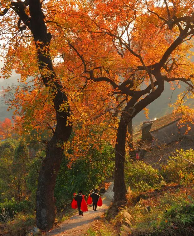12月是这里最美的季节,每到初冬万物萧索之际,当其他地方的红叶都凋得差不多时,文成的山岭上才刚刚彰显出血染的生机勃勃,古道与红枫相映、沧桑中透着几点浪漫,令人欣喜不已。