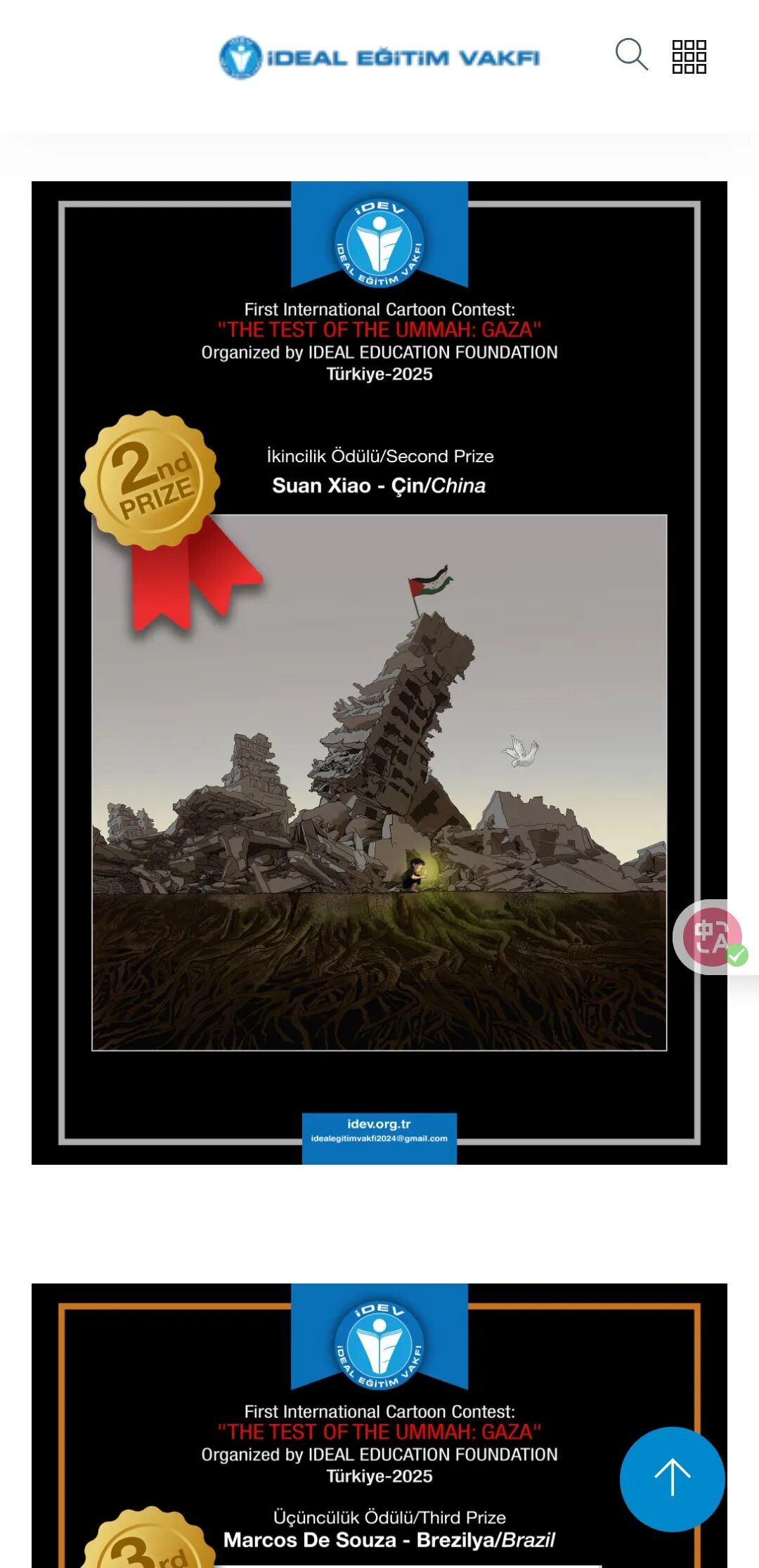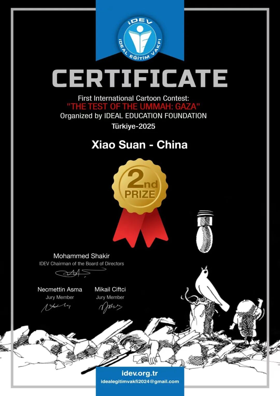 2025年5月获得首届土耳其主题加沙国际漫画大赛第二名