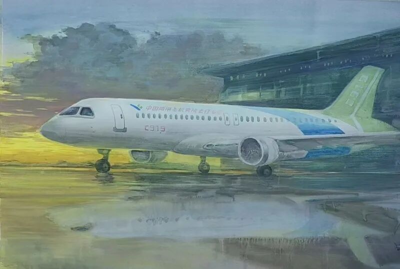 C919题材的创作,是响应国家大力发展航空制造业的战略方针。C919作为我国自主研发的大型客机,其成功研制体现了国家在高端制造业领域的重大突破和创新驱动发展战略,他是希望通过艺术创作展现这一伟大成就 。
