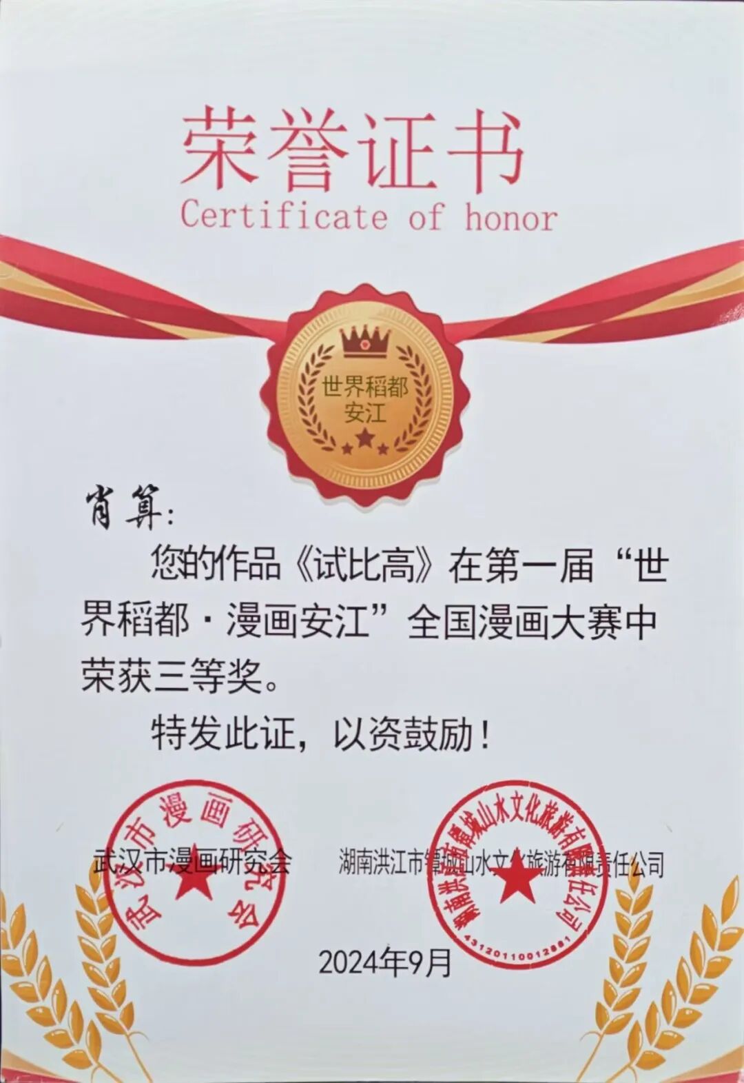 漫画作品《试比高》获首届“世界稻都·漫画安江”全国漫画大赛三等奖