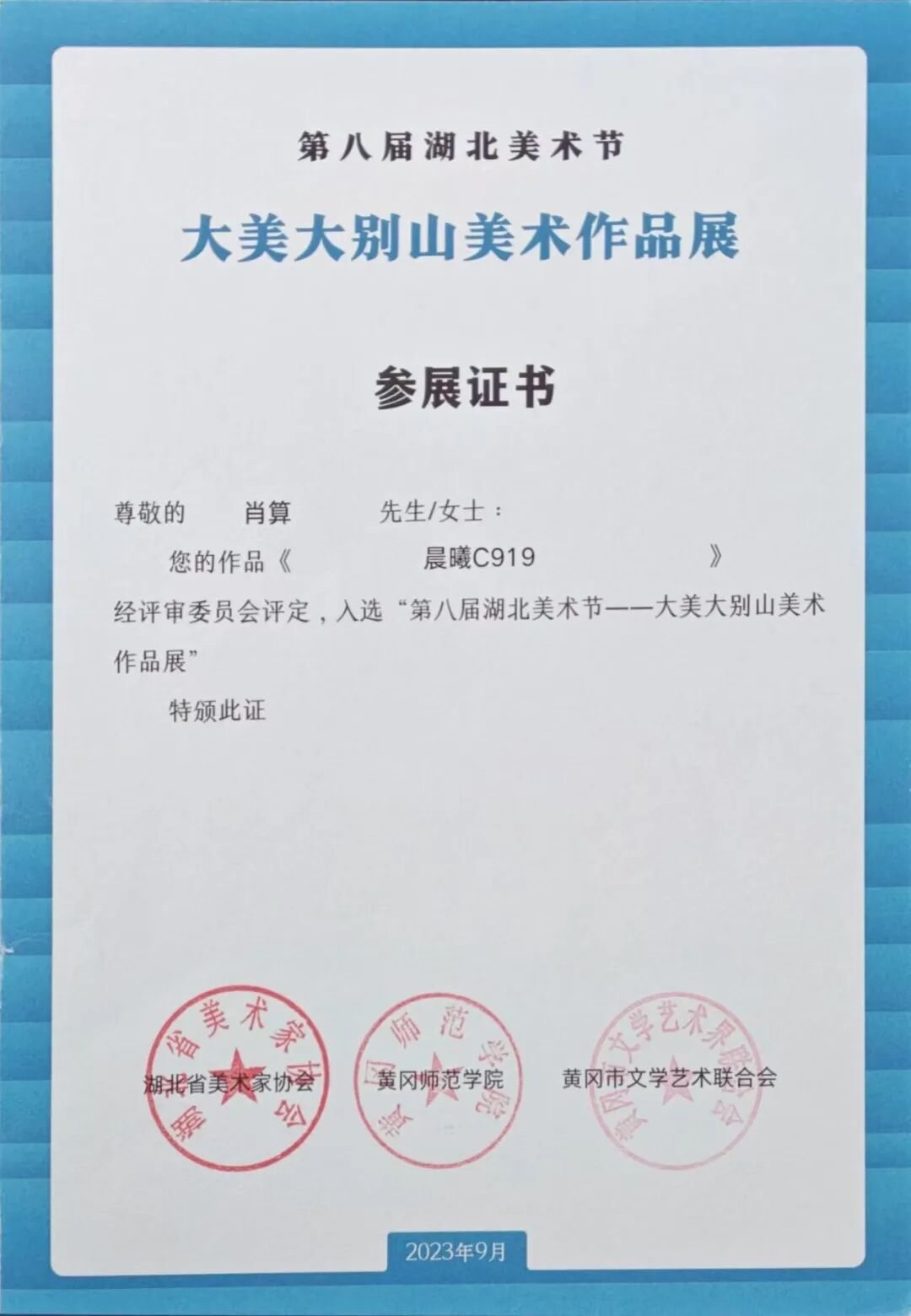 2023 水彩作品《晨曦c919》入选湖北省大美大别山美术作品展