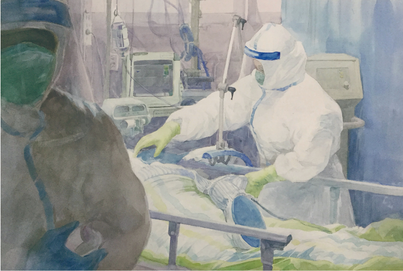 2020 水彩作品《战疫之影》入选四川湖北联合举办的“不忘初心共同战 疫”——”两新“青年艺术家抗疫作品展