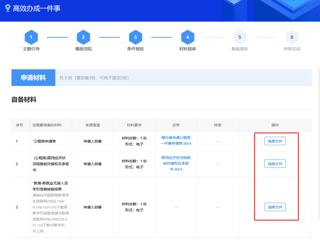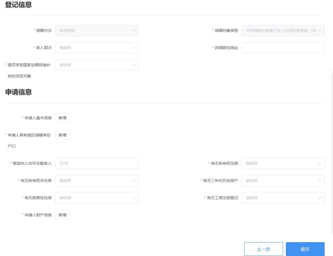 2.区划选择申请人所居住的街道社区,选择公租房保障方式后,线上提交材料与填报信息