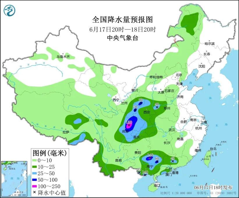 中央气象台17日18时继续发布暴雨蓝色预警:预计17日20时至18日20时,甘肃东部和南部、陕西中部、四川盆地大部、广西中北部和南部沿海、广东中部和西南部沿海等地部分地区有大到暴雨,其中,四川盆地西北部、广西北部和南部沿海等地局地有大暴雨。
