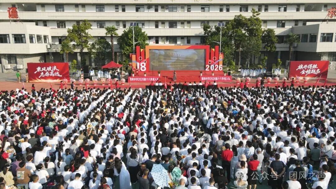 10月7日,团风中学2026届高三年级的成人礼在学校操场隆重举行。本次活动以“十八而志、强国有我”为主题,高三年级全体教师、学生及家长共同参与,通过一场充满仪式感的活动,见证了学子们从少年走向成年的重要时刻。