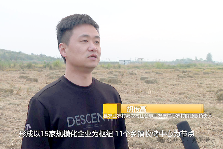 县农业农村局农村社会事业发展中心农村能源股负责人 胡传高:形成以15家规模化企业为枢纽、11个乡镇收储中心为节点、村级站点为末梢的“三足鼎立”收储格局,确保秸秆“收得起来、运得出去、用得及时。”