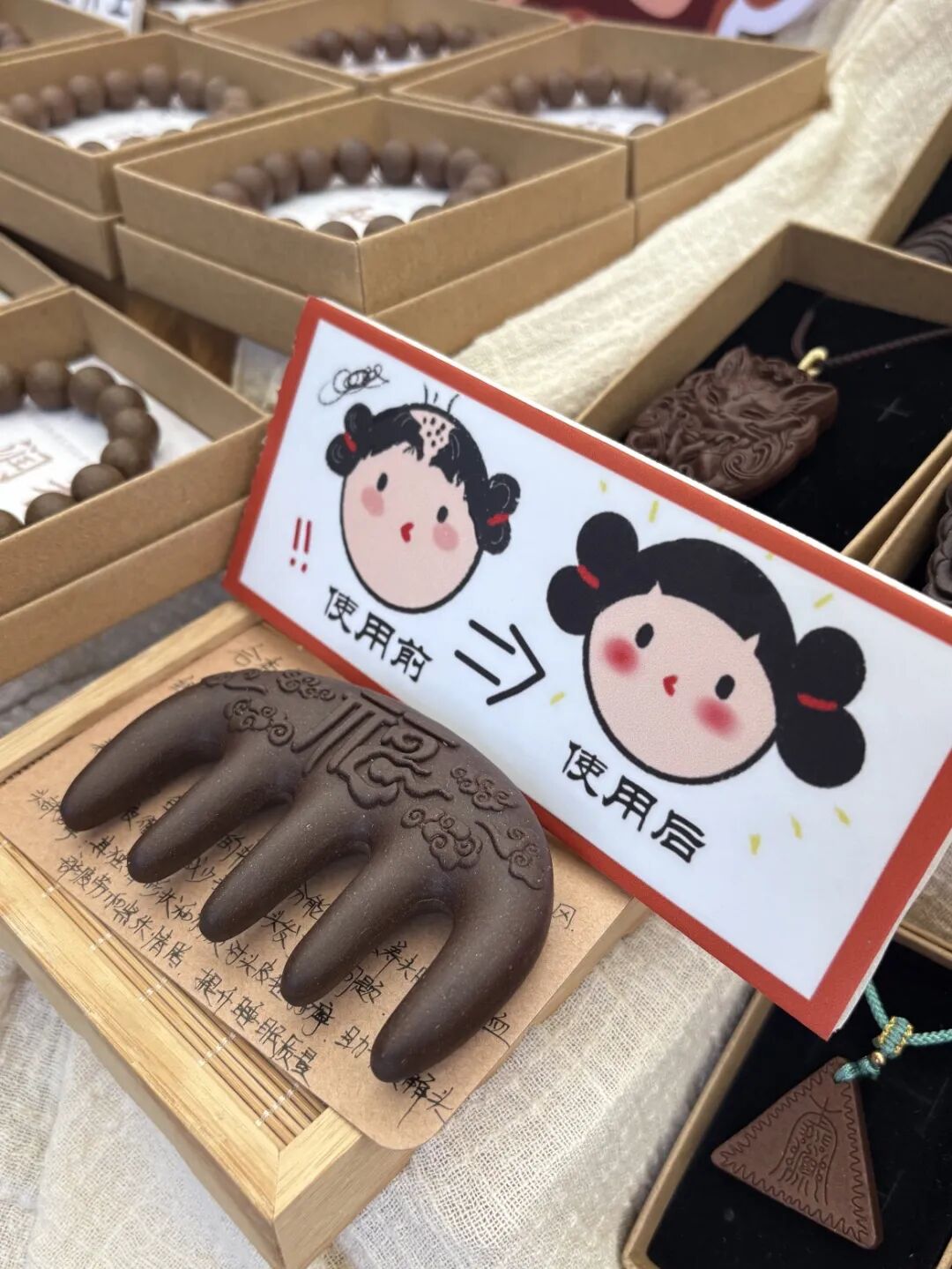 中药梳子梳齿软乎乎的,梳头发时能闻到淡淡的草药香,梳完头头皮都松快了,像做了次轻柔按摩;梳齿经过特别设计,搭配多种护发药材,每次梳头都是一次头皮药浴。