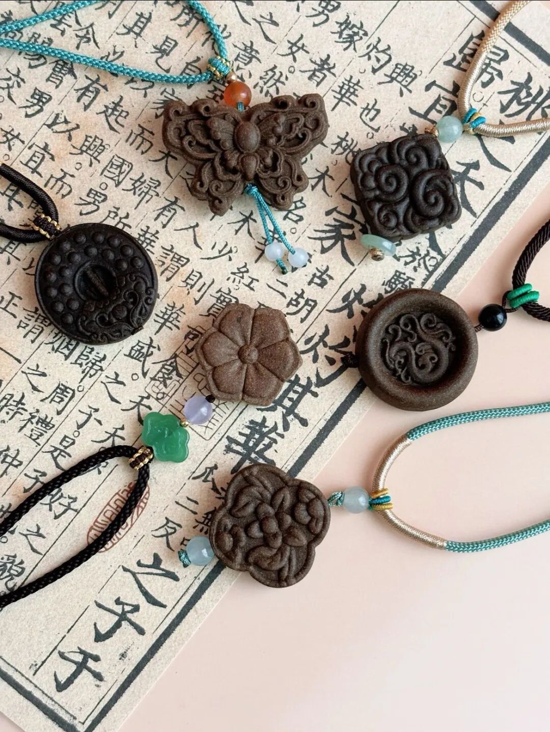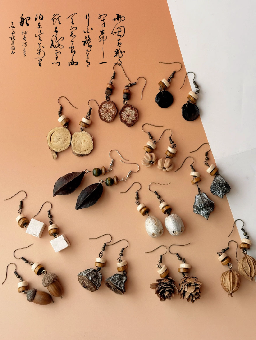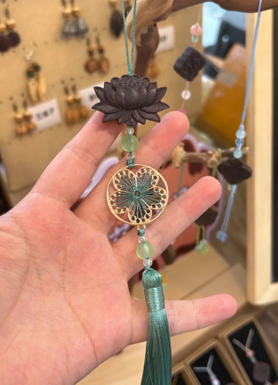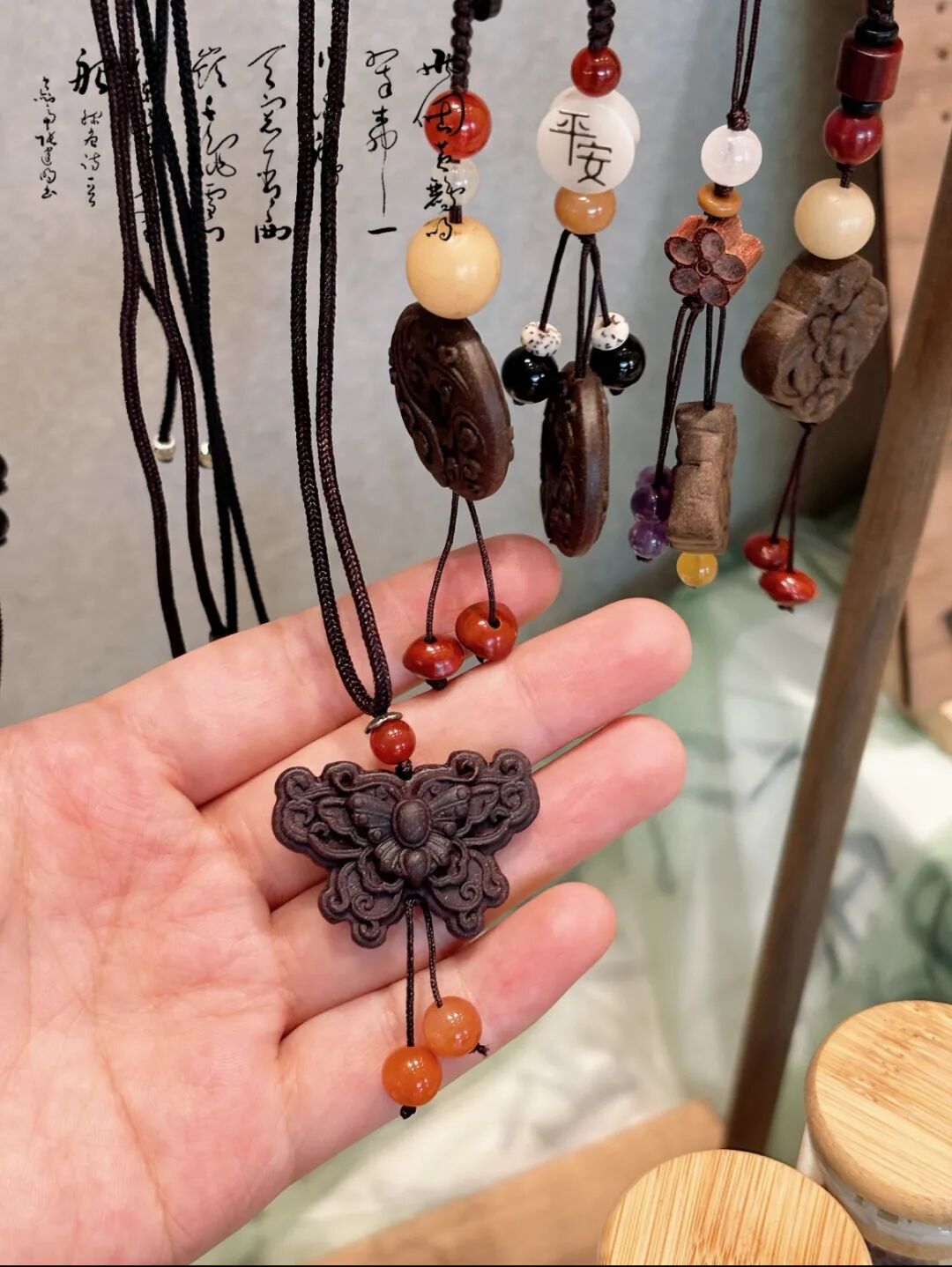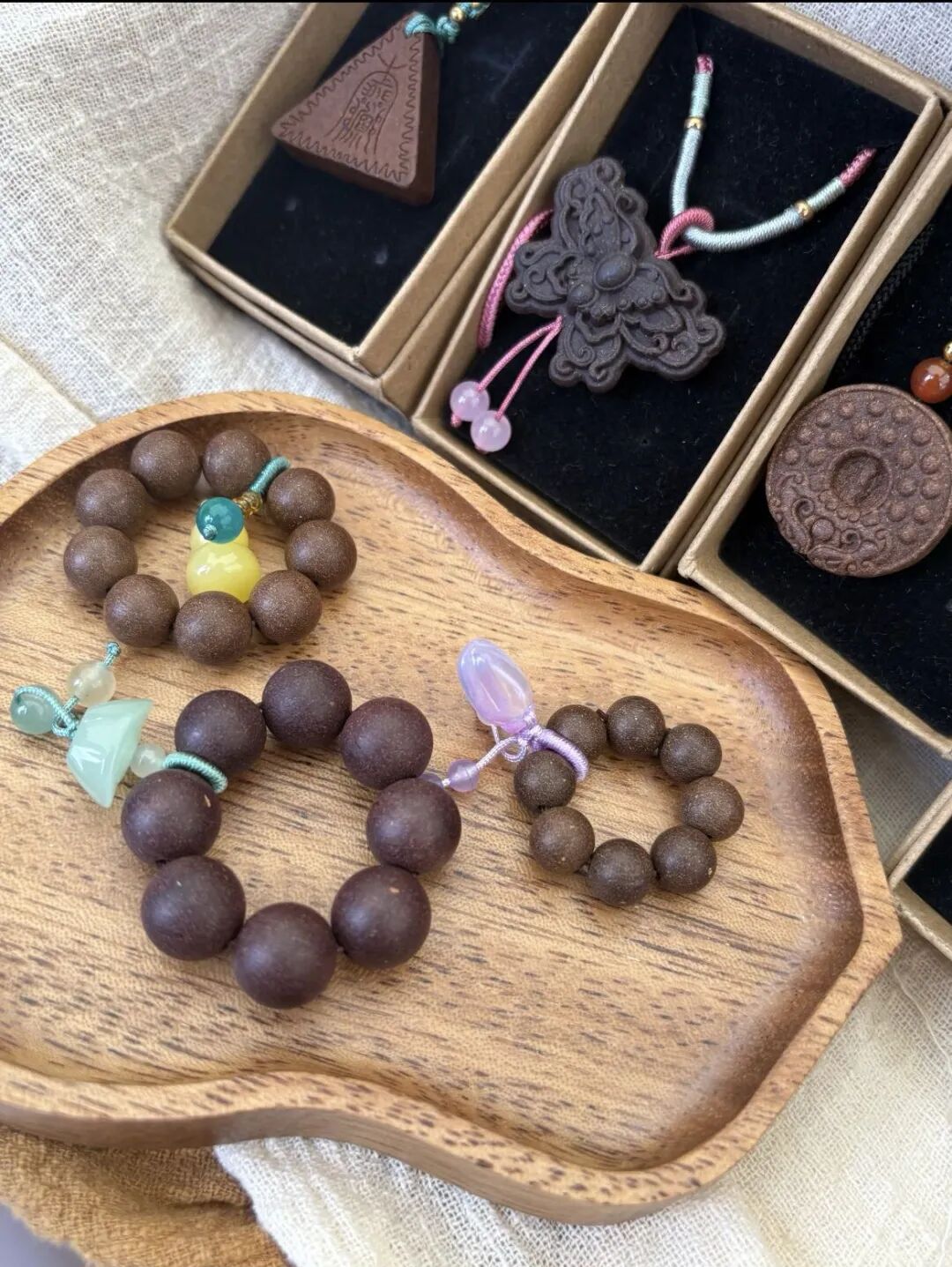 手串是温润的草本材质,戴在手腕上不沉,还隐约有股淡香;项链和耳环设计超简约,日常搭T恤、裙子都不违和,感觉像揣了个“随身小养生包”。