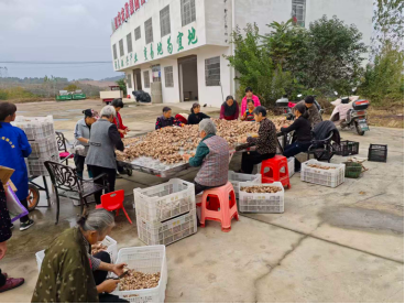 丰收的香菇,不仅丰富了百姓的“菜篮子”,也串起了一条实实在在的增收链。鲜菇采摘后,一部分以每斤4–6元的保底价直接供应市场,另一部分则经剪蒂后运往火连畈产业园,加工成附加值更高的干菇,批发价可达每斤20–50元,逐步形成“基地生产、园区加工、统一销售”的产业链协同模式。基地还优先招聘易地搬迁群众和脱贫户,目前已带动80户在家门口就业,实现年增收近100万元。