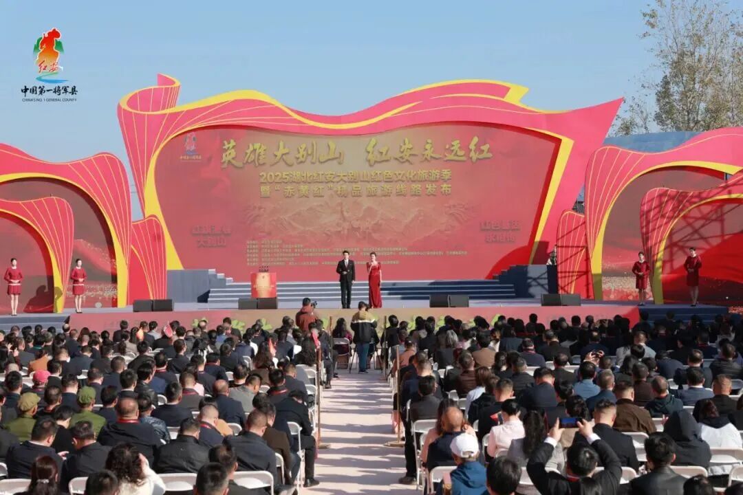 11月13日,“英雄大别山 红安永远红”2025湖北红安大别山红色文化旅游季开幕式在黄安古城红安影视幻城举行,“赤黄红”精品旅游线路同步发布。