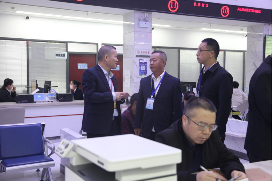 图为该市纪委监委到市政务服务中心走访了解“高效办成一件事”项目推进情况