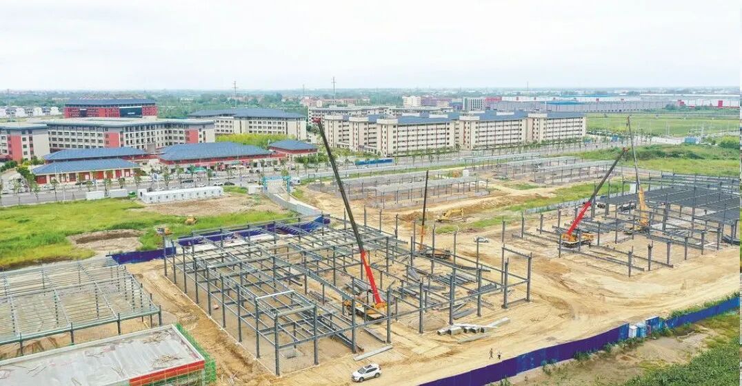 10月28日,投资10亿元的黄冈科技职业学院(何家湖)二期建设项目1号至6号实训车间钢结构厂房主体正在紧张施工中。该项目主要建设实训中心(产业基地)、教学楼、宿舍楼、第二食堂、实训车间、研学基地、体育看台等,二期建设完成后,团风校区在校生将达到15000余人。