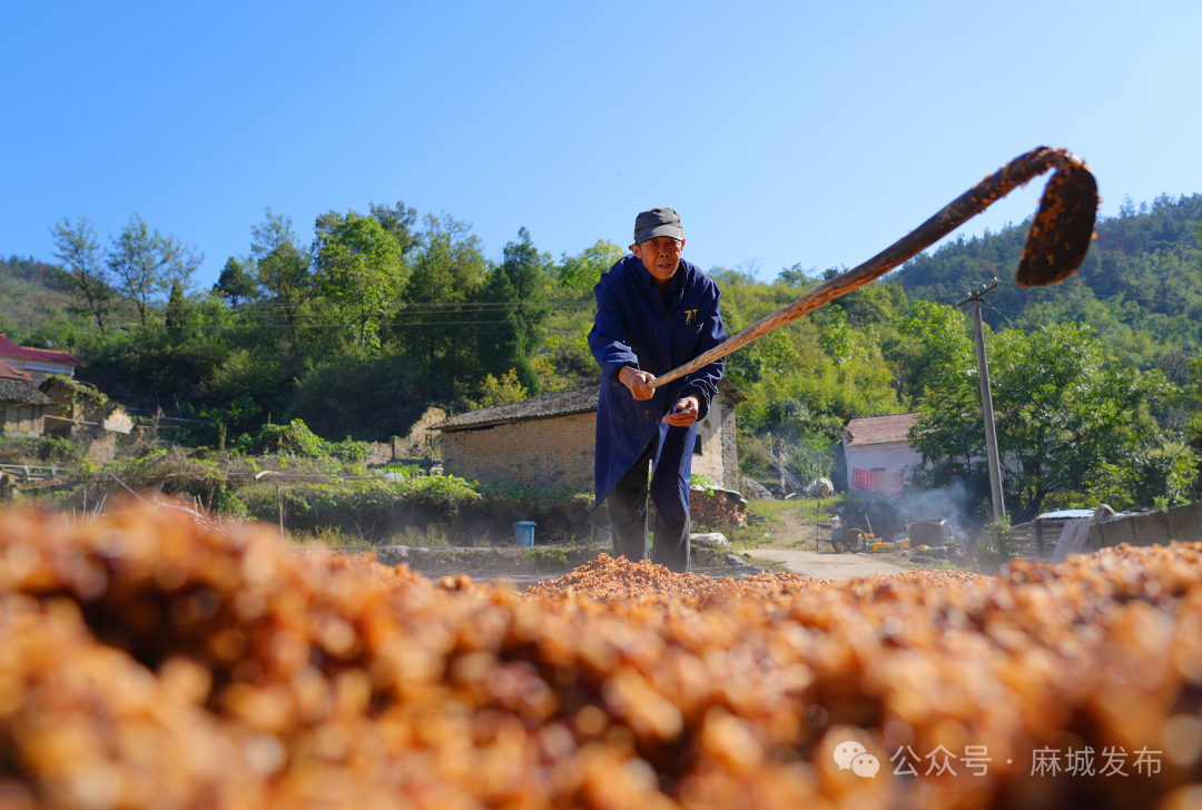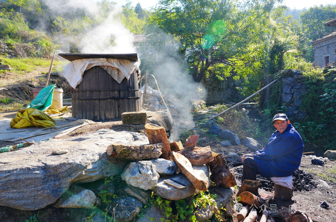 初秋的麻城,天高云淡,漫步群山环抱的夫子河镇刘家大湾村,柿子挂满枝头,村庄静谧如画,好一幅田园美景。就在这恰到好处的20度天气里,村民刘劲松正忙着一年中最重要的农事之一——“吊酒”。