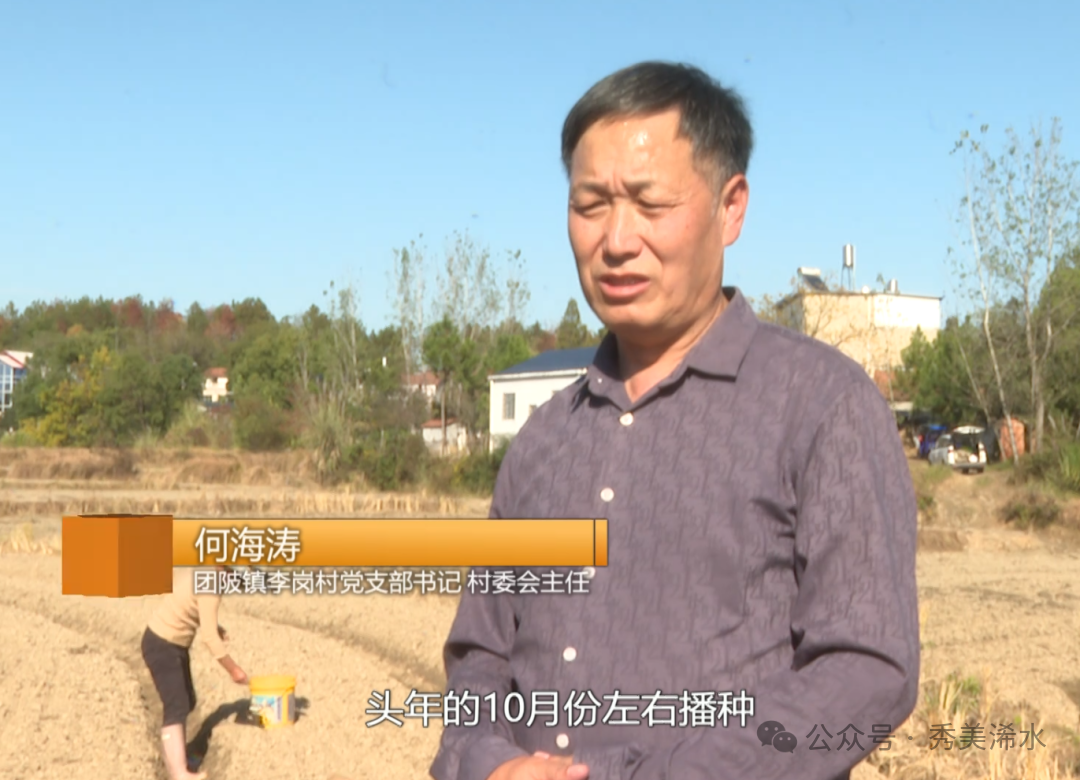 团陂镇李岗村党支部书记、村委会主任 何海涛:传统播种方法是条播或者撒播,今年从汉中引进的新技术——点播。点播比较均匀,亩产在汉中可达到1000-2000斤,而我们传统播种方法只能达到600-1000斤。