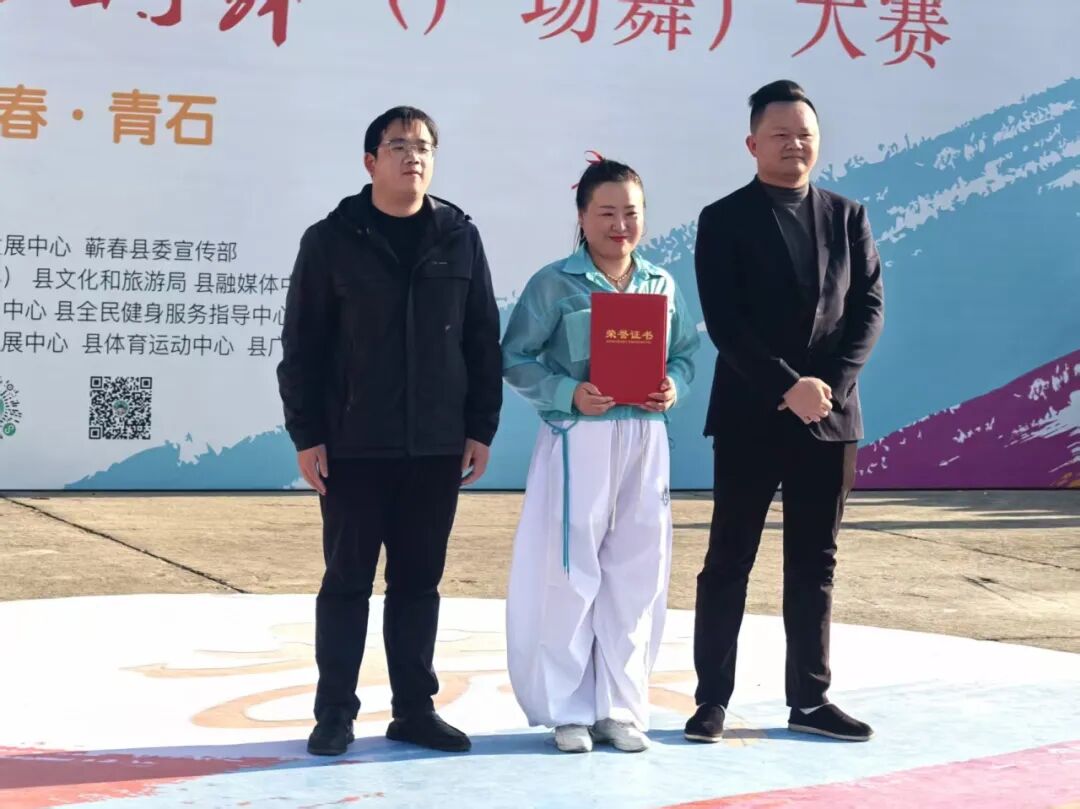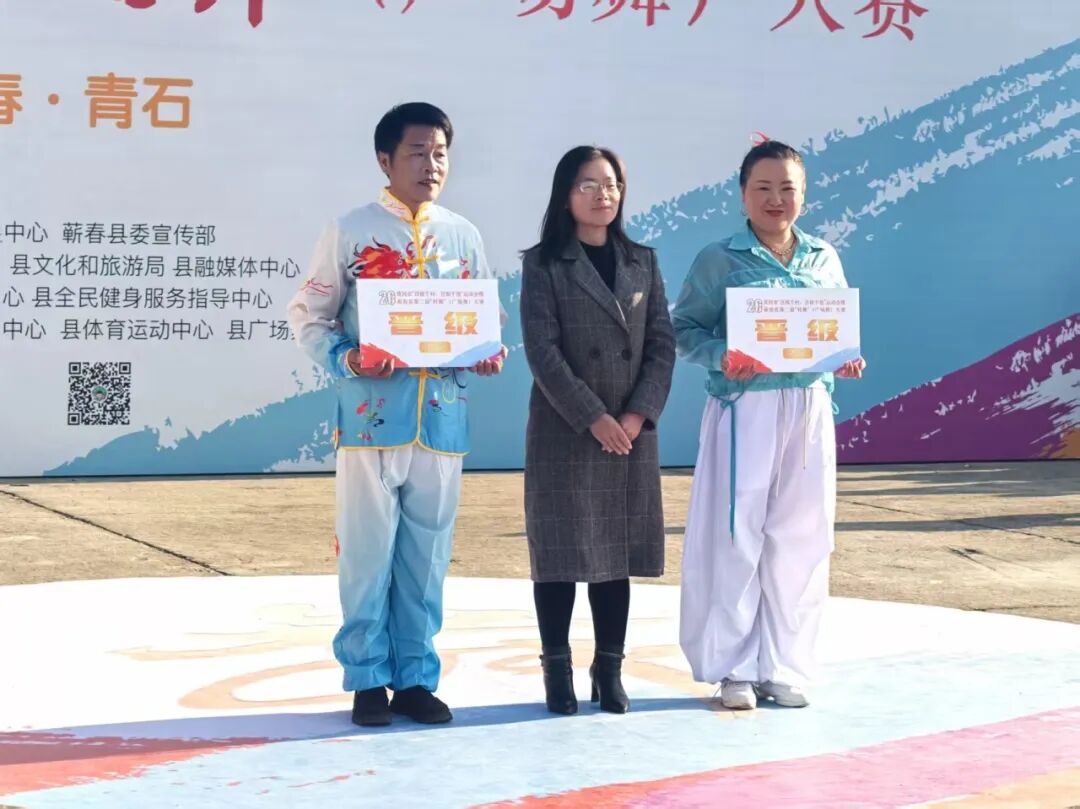 蕲春县文旅局大型文化艺术活动中心主任徐琨;黄冈市体育舞蹈运动协会常务理事,囯家级社会体育指导员,国家一级裁判、国家一级教练,曾荣获全国常青组标准舞冠军孙永东;蕲春县广场舞协会会长、优秀基层文化干部、国家一级社会体育工作指导员李中平。