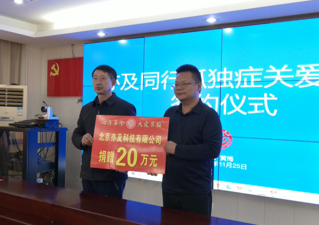 11月25日下午,“亦及同行孤独症关爱基金”成立仪式在黄梅温暖举行。这是我县首支专门为孤独症群体设立的关爱基金,由北京亦及科技有限公司与黄梅县慈善会共同发起,旨在为“星星的孩子”及其家庭送去关怀与支持。