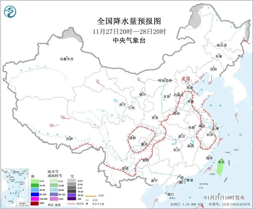 中央气象台预计,27日20时至28日20时,内蒙古东北部、黑龙江北部、新疆北疆北部等地部分地区有小雪。台湾岛等地部分地区有小雨。内蒙古西北部、辽东半岛、西藏中部、甘肃西部等地部分地区有5~6级风,阵风7~9级;南海海域将有7~9级风,阵风10级,台湾海峡、巴士海峡、南海北部海域将有7~8级风,阵风9级。