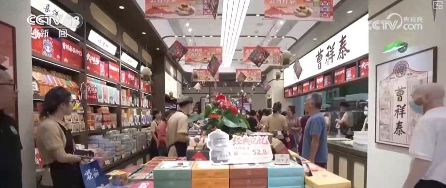 在新开的几家市内免税店,免税区专门设置了国潮区域,摆放了中华老字号商品、非遗产品以及国潮商品等,为游客提供了更多选择。