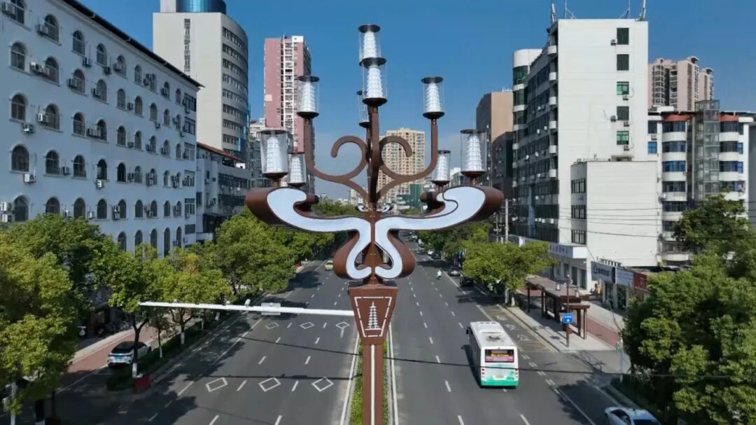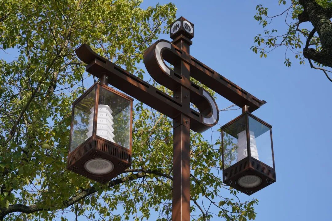 若说道路硬化工程铸就了城市的“筋骨”,那么文化元素的注入则赋予其温润的“灵魂”。作为苏东坡谪居黄州的“精神家园”,宝塔大道以“遇见东坡”为叙事主线,将宋韵雅意渗透进每处细节:莲花灯盏托起青云塔形灯芯,夜色中流光泻玉;公交站台取意宋代官帽,古朴形制中暗藏无线充电与光伏科技;路缘石叠级七层,呼应青云塔影;井盖镌刻着“青云塔”和“宋式祥云”的图案;祥云纹样的地砖绵延不绝……一砖一石似在轻语,东坡文化在黄州处处可寻。