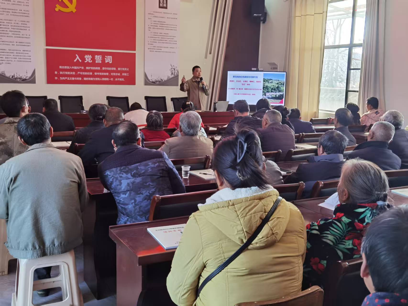 培训课程以本地红色地标为切入点,系统梳理了乘马岗镇革命老区的红色文化脉络,深入挖掘了红色文化精神的新内涵与时代价值。课程重点讲解了农户参与旅游收益的多种模式,包括红色主题民宿运营、特色农产品开发、沉浸式文旅服务等,并结合省内外成功案例,为学员提供了可借鉴、可推广的发展经验。围绕提升服务水平,课程着重强调了“主动自我推介”和“差异化体验感”这两个关键要素,引导学员从红色资源中挖掘独特优势,实现从被动“等客来”到主动“引客来”的转变。