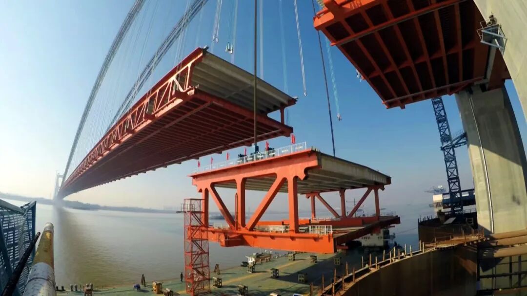 “在地质复杂、航空限高的不利条件下,我们采用世界首创不同垂度四主缆结构体系一跨过江,目前钢梁已贯通,计划2026年通车。”中铁大桥局主桥工区技术负责人贾非凡的话语中满是自豪。